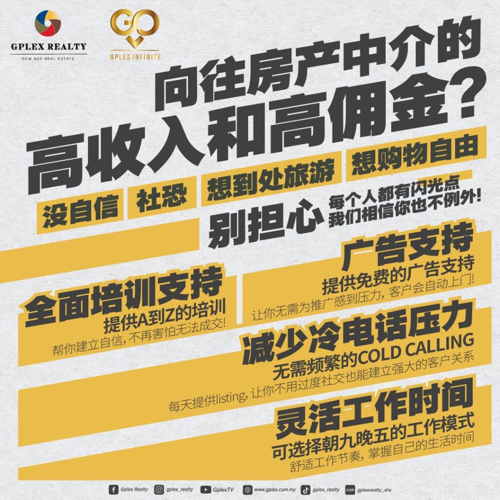 Gplex Realty已经在市场上树立了稳固的声誉,这意味着你将代表一个受人信赖的品牌,开启属于你的房地产事业